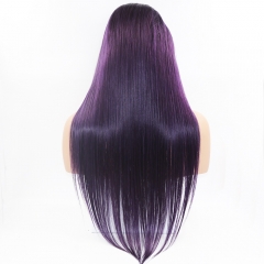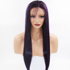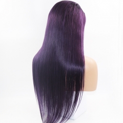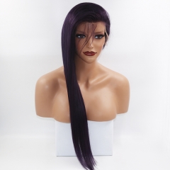 Elegant Dark Purple Straight Lace Front Human Hair Wig With Baby Hair Preplucked Brazilian Remy Virgin Lace Front