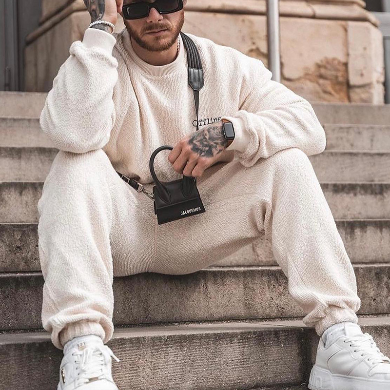 Men Casual Sports Loose Plush Sweatershirts And Pants Two-Piece Set