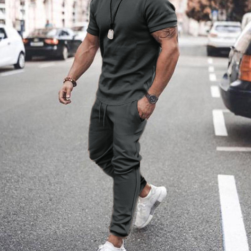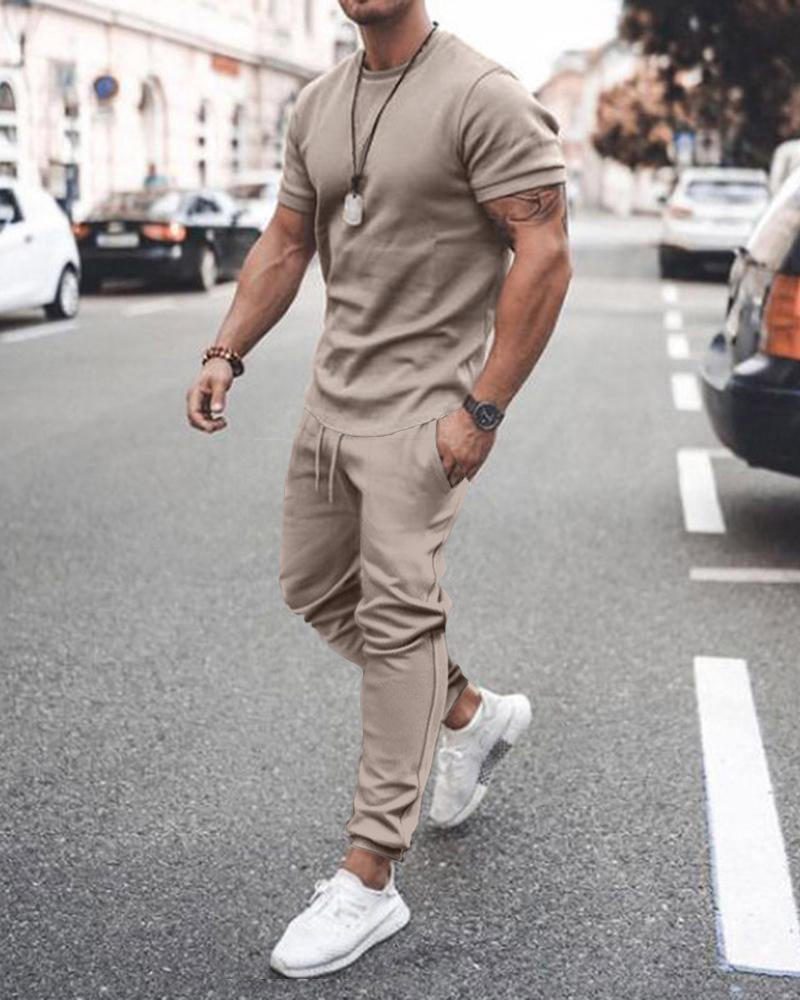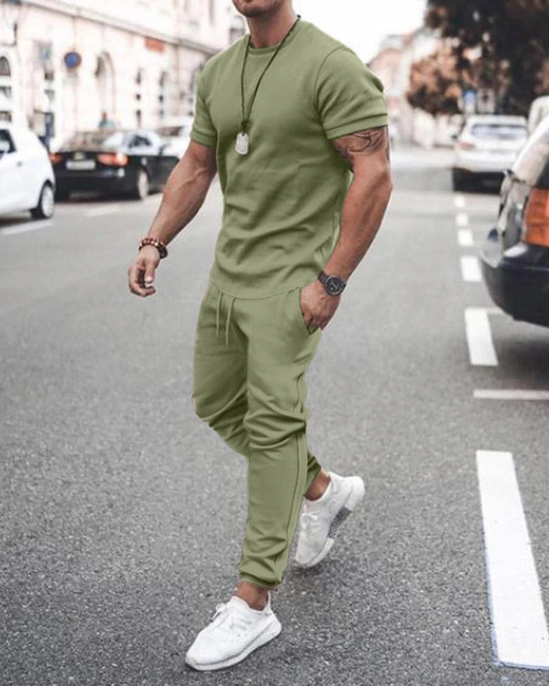 Be the first to review “Men’S Fashion Round Neck Short Sleeve Solid Color T-Shirt And Trousers Two-Piece Set”