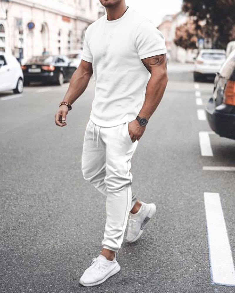 Men’S Fashion Round Neck Short Sleeve Solid Color T-Shirt And Trousers Two-Piece Set