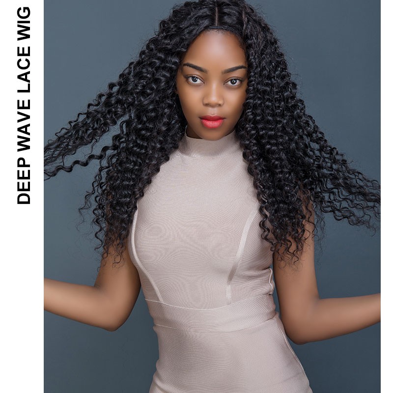 Peruvian Deep Wave Human Hair Lace Frontal Wig With Baby Hair