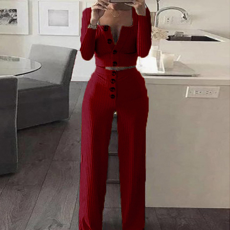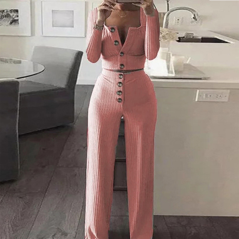 Be the first to review “S-2XL Women Fashion Solid Color Single-Breasted Top And Pants Two Piece Set”