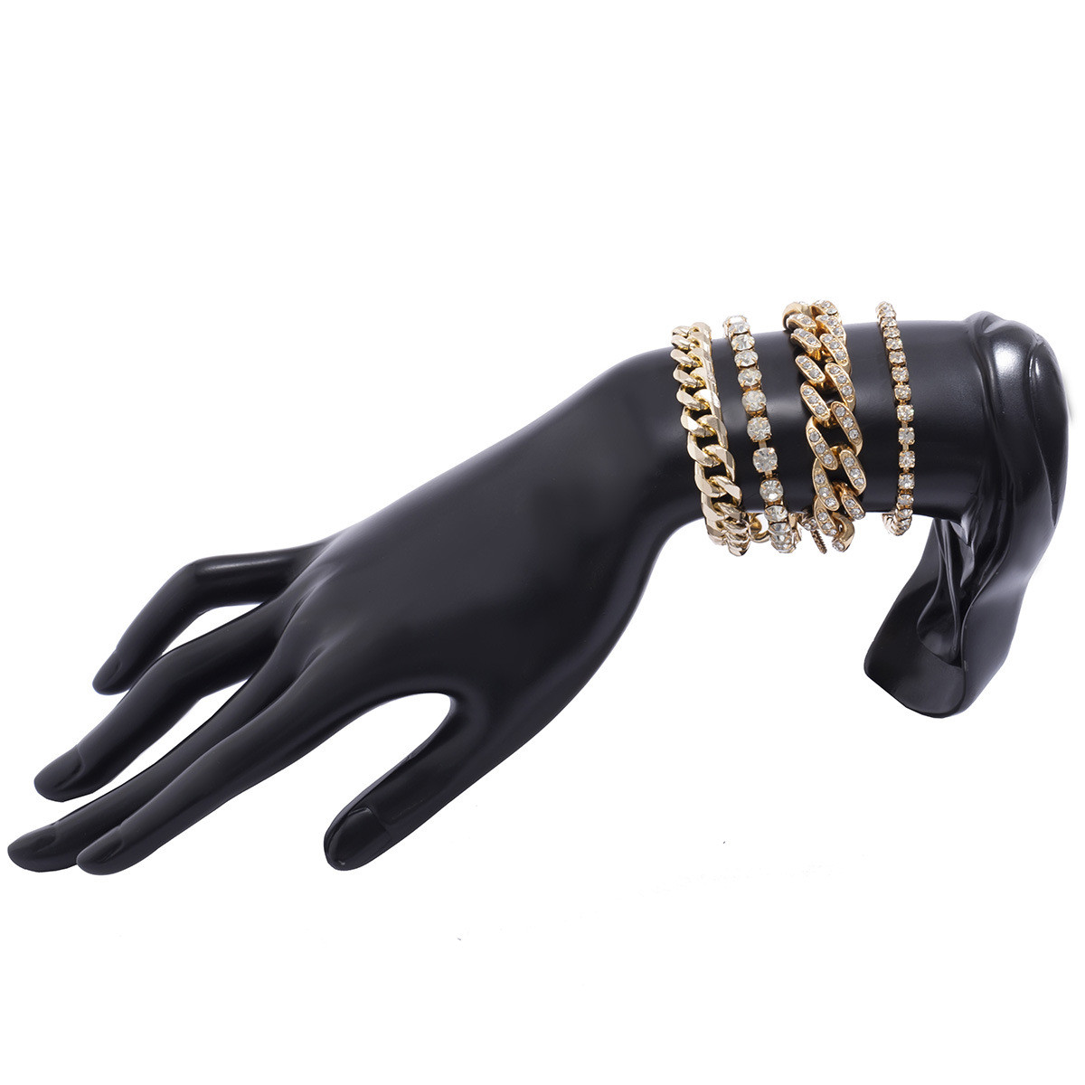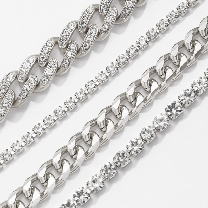 Simple Vintage Full Diamond Cuban Chain Bracelet Set