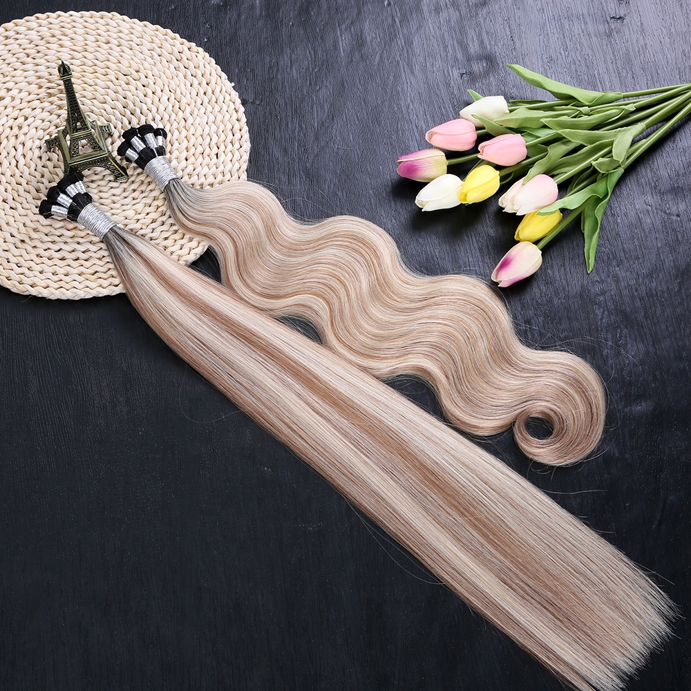 super double drawn virgin european human hair extension balayage color 24 inch hand tied weft