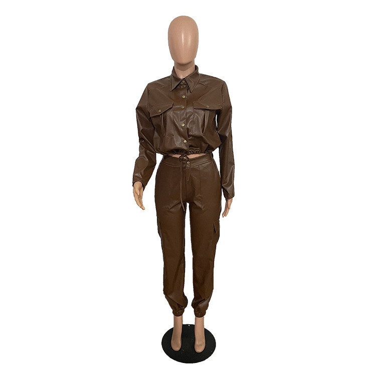 Be the first to review “Women Autumn Winter Fashion Slim Pu Leather Solid Color Crop Jacket And Pants Set” Cancel reply