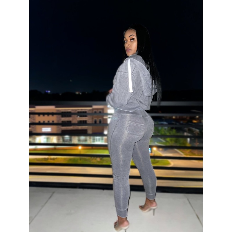 Be the first to review “Women Solid Color Long Sleeve Hooded Loose Top And High Waist Pants Casual Two-Piece Set” Cancel reply