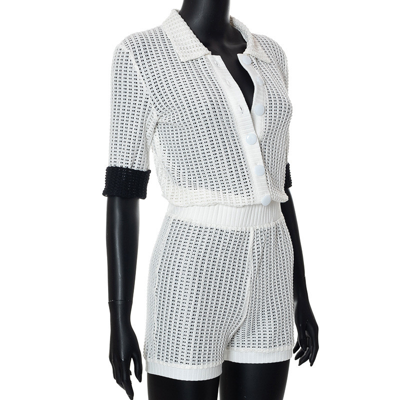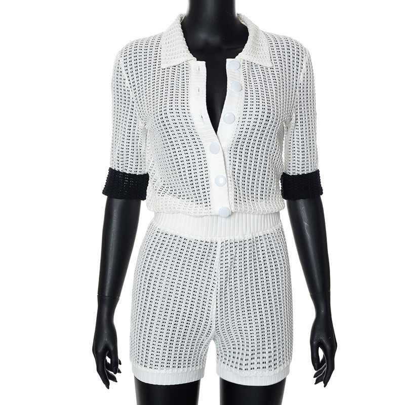Women Solid Color Short-Sleeved Lapel Knitted Hollow Waist Rompers